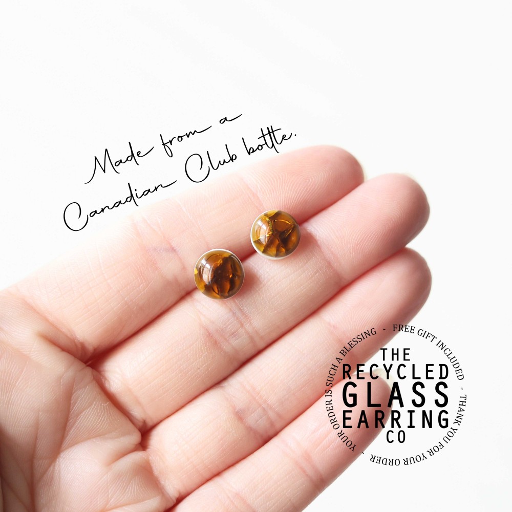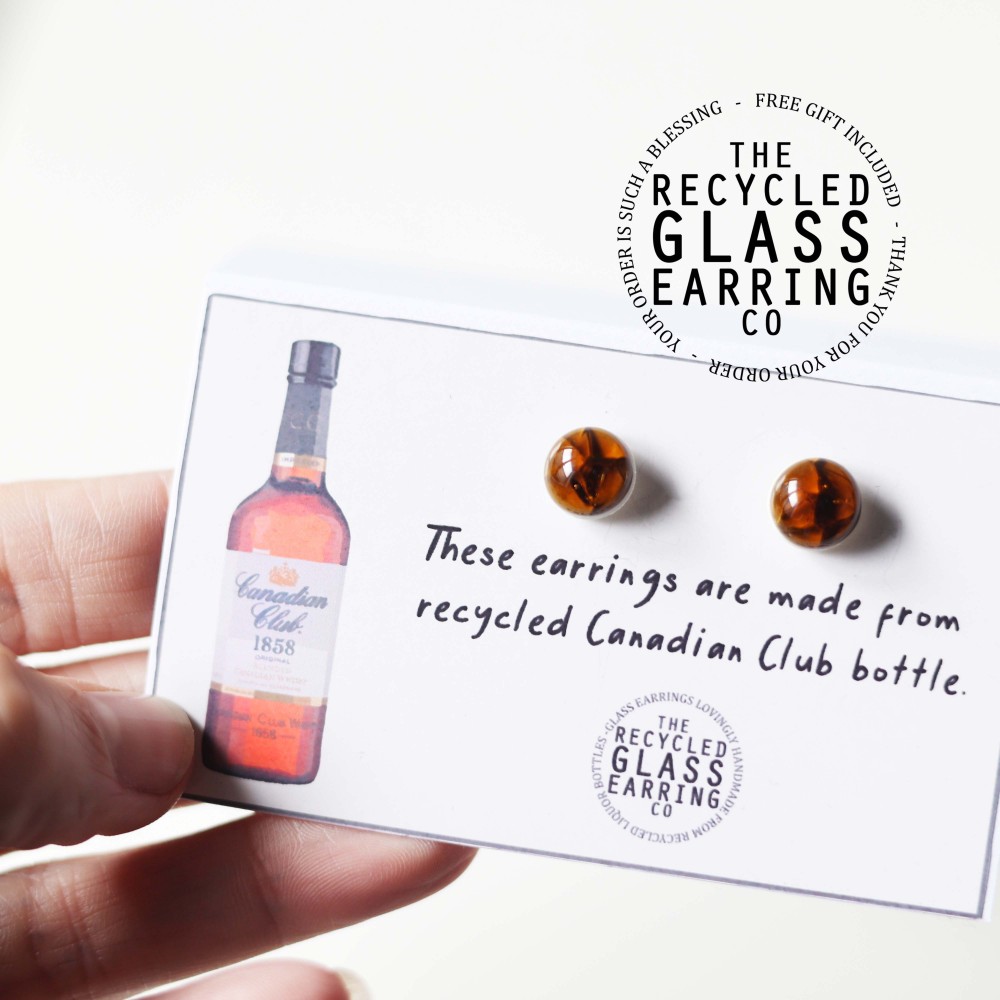 These earrings are lovingly handmade from recycled Canadian Club bottle.