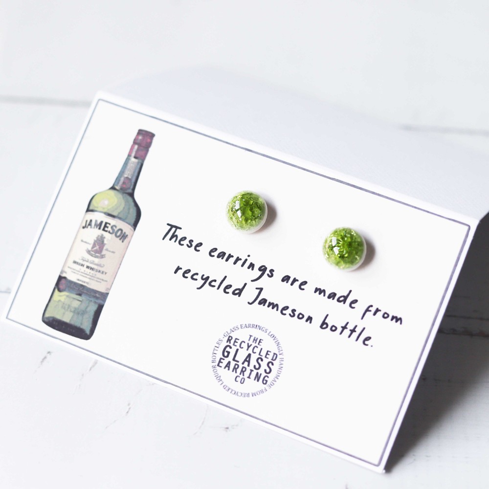 These earrings are lovingly handmade from recycled Jameson Whisky bottle.