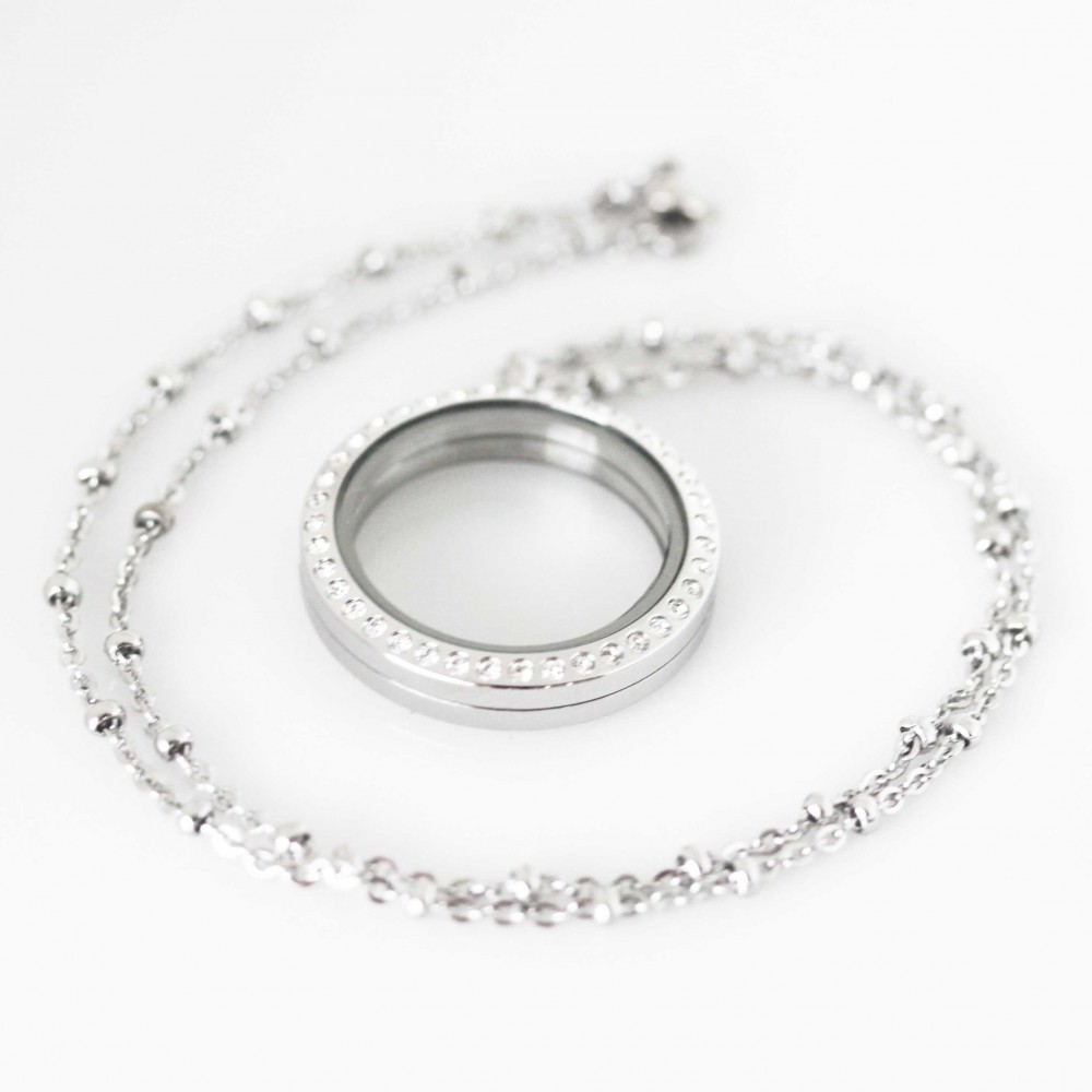 1 x 3cm wide Silver Bling Magnetic Locket (stainless steel)
